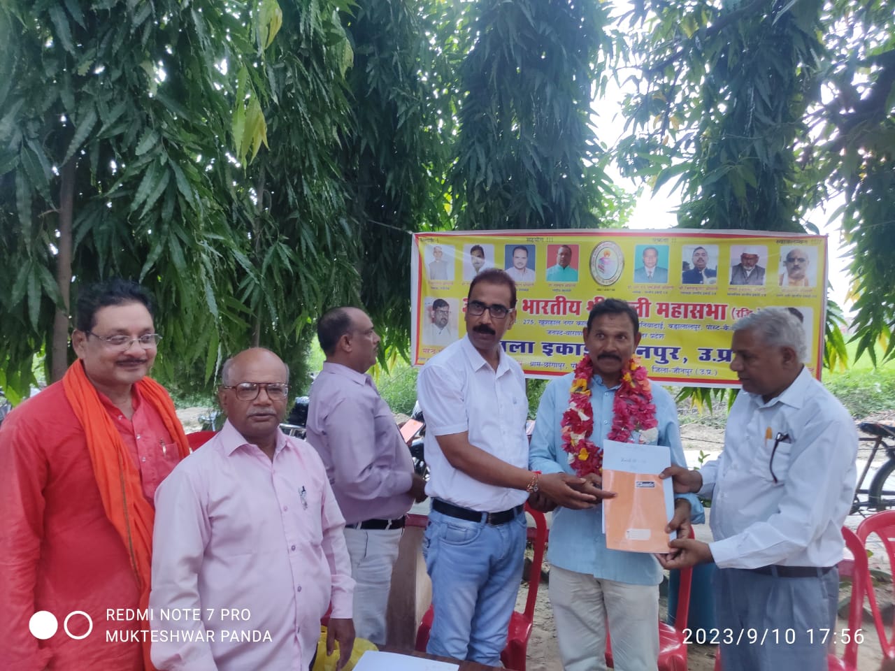 कार्यक्रम के अंत मे उपस्थित राष्ट्रीय अध्यक्ष राजेंद्र प्रसाद श्री माली , व प्रदेश अध्यक्ष राज नारायण पुष्पजीवी श्री माली ने जौनपुर इकाई के अध्यक्ष भूलेश्वर पुष्कर श्री माली को माल्यार्पण कर पुष्प गुच्छ भेट कर बधाई दी।