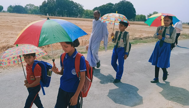 अप्रैल के महीने में ही तापमान बढ़ा, धूप में विद्यालय आवा गमन में, बच्चों को हो रही समस्या