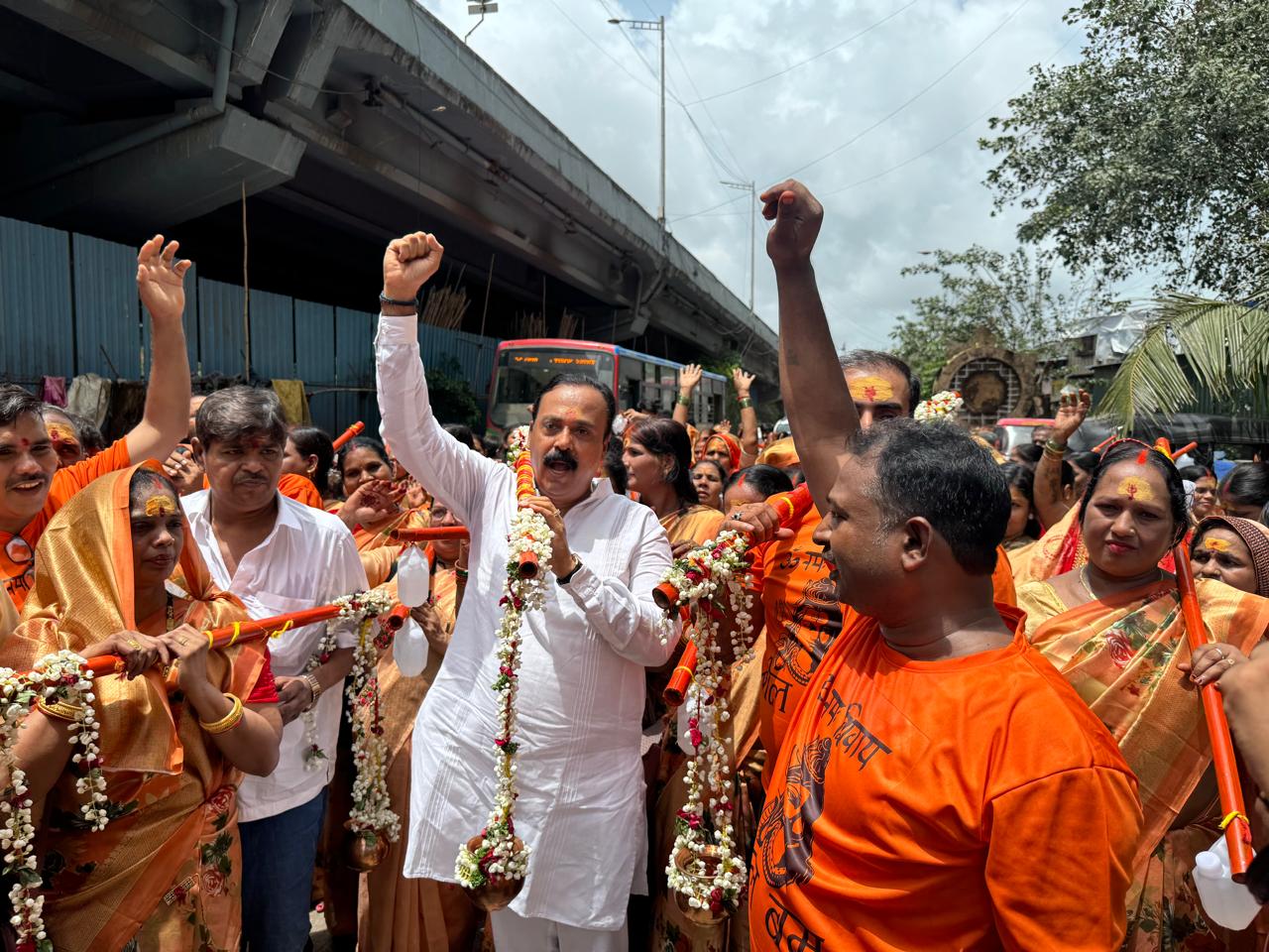 मुंबई। सावन के पवित्र माह में एक अनोखी और अभूतपूर्व कावड़ यात्रा कुर्ला ( ईस्ट) में देखने को मिली। यात्रा में हर उम्र की महिलाएँ भारी संख्या में शामिल हुई, भक्तों के हाथों में त्रिशूल और माथे पर भस्म लगाकर आस्था का अद्भुत प्रदर्शन किया हर हर महादेव से वातावरण शिवमय हो गया, कावड़ यात्रा का भव्य आयोजन उत्तर भारतीय संघ कार्यसमिति सदस्य महेश गुप्ता द्वारा आयोजित की गई जो वात्सल्य नाइक नगर जय भवानी मंदिर कुर्ला से प्रारंभ होकर अंबरनाथ तक पहुंची प्रमुख अतिथि के रूप में उपस्थित उत्तर भारतीय संघ उपाध्यक्ष संजय सिंह यात्रा में शामिल हुए भक्तों को शुभकामनाए दी उत्साहवर्धन किया। उन्होंने कहा कि कांवड़ यात्रा भगवान शिव के प्रति अटूट श्रद्धा की धार्मिक यात्रा है। इस अवसर पर यश महेश गुप्ता, पत्रकार सुभाष गिरी, दिलीप तिवारी दिलीप जायसवाल व भारी संख्या में भक्तगण उपस्थित थे।