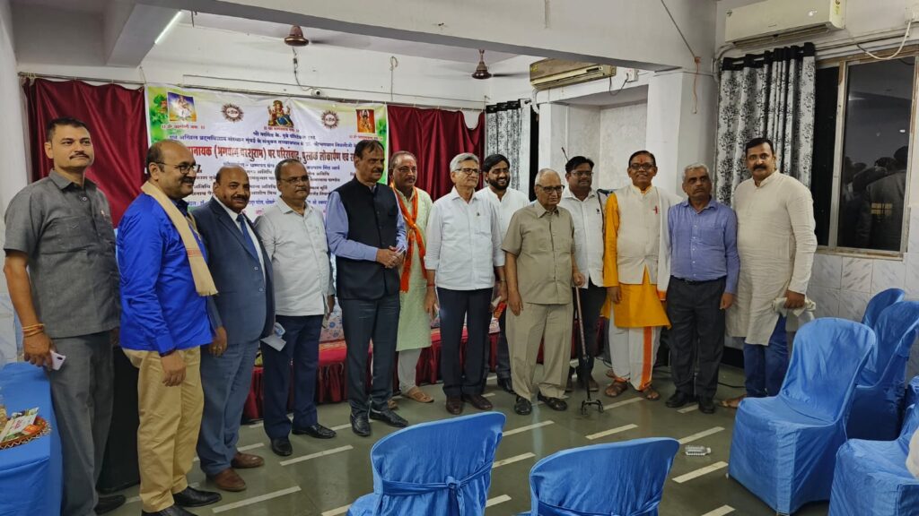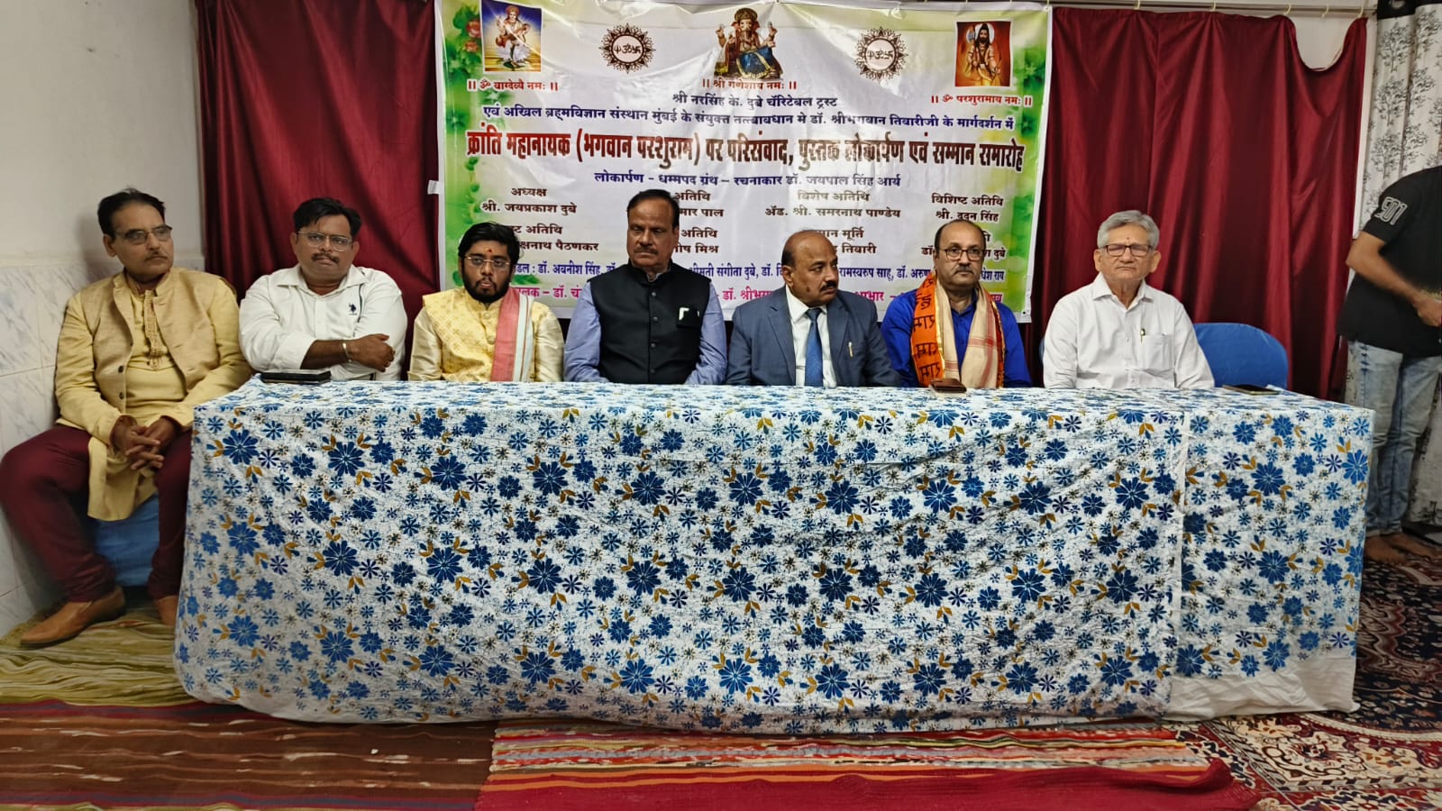 मुंबई। श्री नरसिंह के.दुबे चैरिटेबल ट्रस्ट एवं अखिल ब्रह्म विज्ञान संस्थान मुंबई के संयुक्त तत्त्वावधान में, नालासोपारा आयुर्वेद मेडिकल कॉलेज एवं हॉस्पिटल में श्रीभगवान तिवारी के मार्गदर्शन में “क्रांति महानायक” भगवान परशुराम पर परिसंवाद का आयोजन किया गया। कार्यक्रम का प्रारंभ संस्था के अध्यक्ष जयप्रकाश दुबे, मुख्य अतिथि एडवोकेट श्री समरनाथ पाण्डेय, विशेष अतिथि चिंतामणि द्विवेदी, वेदमूर्ति गोरक्षनाथ पैठणकर, गणमान्य अतिथि आशीष मिश्रा,सम्मानमूर्ति डॉ. राजेंद्र तिवारी, अखिल भारतीय ब्राह्मण परिषद के महासचिव देवेंद्र तिवारी, डॉ. ओमप्रकाश दुबे ने आचार्यों द्वारा वेदमंत्रोच्चार के मध्य माँ सरस्वती, भगवान श्रीगणेश,भगवान धन्वंतरी और भगवान परशुराम की मूर्तियों पर माल्यार्पण, पूजन-अर्चन, दीप प्रज्वलित करके किया। मंच संचालन डाॅ. चंद्रभूषण शुक्ल ने किया। डॉ. रोशनी किरण ने सरस्वती वंदना और भगवान परशुराम स्तोत्र गाया। सम्मानित अतिथियों और वक्ताओ का संस्था के अध्यक्ष जयप्रकाश दुबे ने शाल, श्रीफल, पुष्पगुच्छ देकर स्वागत किया।