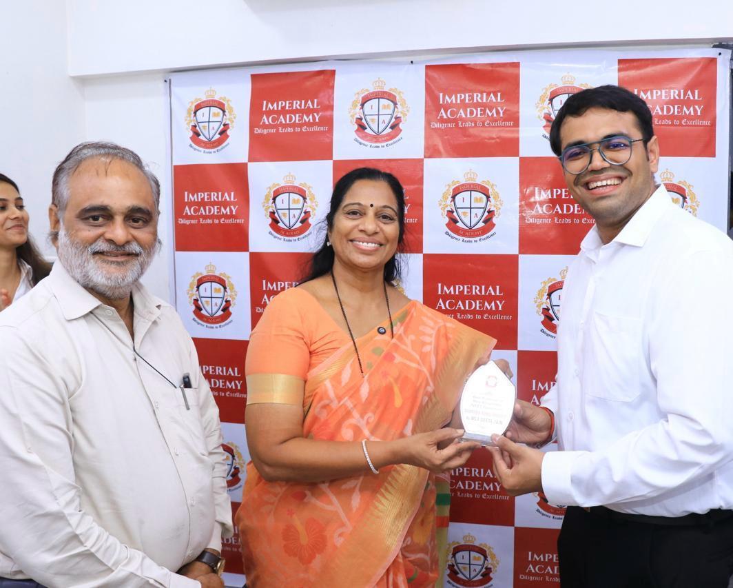 भायंदर। मीरा भायंदर की विधायक गीता जैन ने पूरे शहर में सबसे अच्छा परिणाम देने वाले इंपिरियल अकैडमी के संचालक सौरभ शर्मा को ट्रॉफी देकर सम्मानित किया। इस अवसर पर उन्होंने कहा कि इंपिरियल अकैडमी द्वारा लगातार कड़ी मेहनत की जा रही है, जिसका अच्छा परिणाम दिखाई दे रहा है। अकैडमी की छात्रा रूहीन खान ने नीट की परीक्षा में कीर्तिमान रच दिया है। उसने नीट की परीक्षा में 720 में से 696 अंक प्राप्त कर एक नया कीर्तिमान बनाया है। गीता जैन ने रुहीन खान को बधाई देते हुए कहा कि उसने मीरा भायंदर का नाम रोशन किया है।