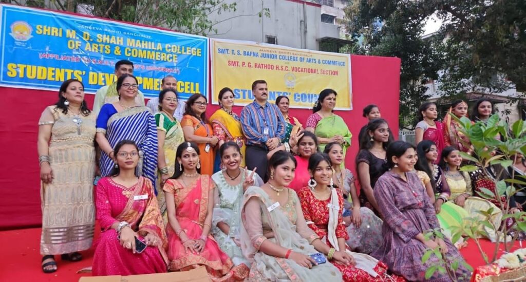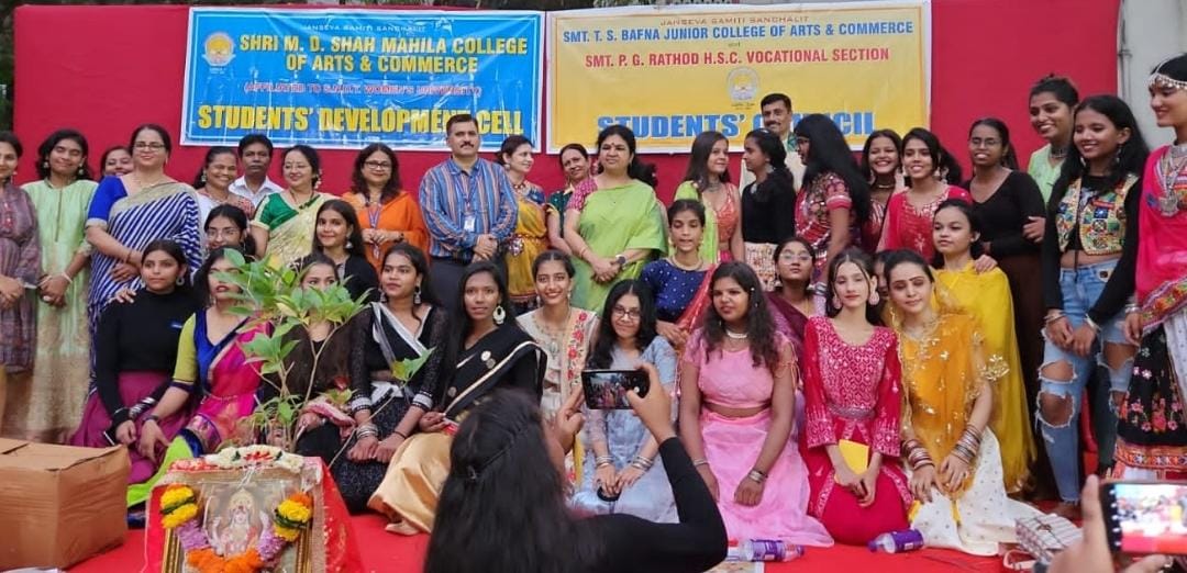मुंबई। जन सेवा समिति संचालित श्री एम डी शाह महिला कॉलेज आफ आर्ट एंड कॉमर्स, टी एस बाफना जूनियर कॉलेज ऑफ़ आर्ट्स एंड कमर्स ,एच एस सी वोकेशनल* ने संयुक्त रूप से प्रेरणा स्वरूप समिति की उपाध्यक्ष निशा सागर चोपड़ा के नेतृत्व में महाविद्यालय की यशश्वी प्राचार्या डॉ दीपा शर्मा के मार्गदर्शन में रास गरबा का आयोजन किया।