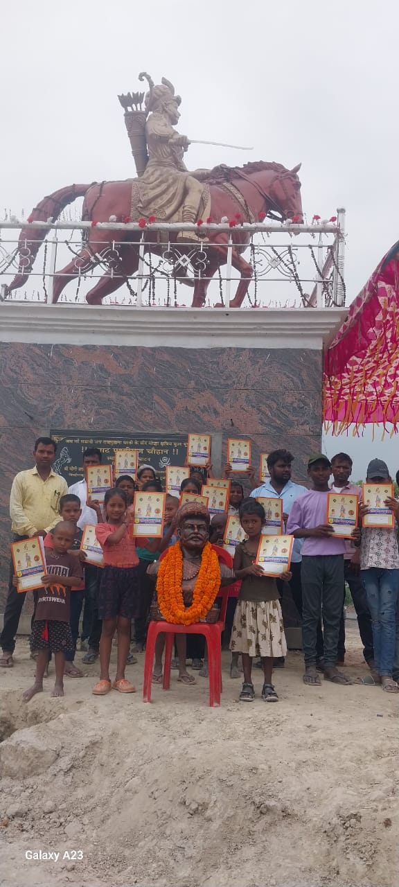 वेशभूषा और अपने व्यक्तित्व को भी संवारना एवं सुधारना होगा,अपने इतिहास और पूर्वजों को भी जानना होगा,ठा.फतेह सिंह चौहान के कर कमरों द्वारा सम्राट पृथ्वीराज चौहान एवं वीर शिरोमणि महाराणा प्रताप के चित्र अंकित पुस्तक को सैकड़ो बच्चों को वितरित किया गया,इस अवसर पर ग्राम प्रधान जयसिंह, अनूप सिंह राजपूत,सुषमा सिंह ममता देवी,नम्रता सिंह,निशा देवी,रामसिंह चौहान, महिलाएं एवं बच्चे उपस्थित रहे,कार्यक्रम का सफल संचालन रतन सिंह परमार द्वारा किया गया।