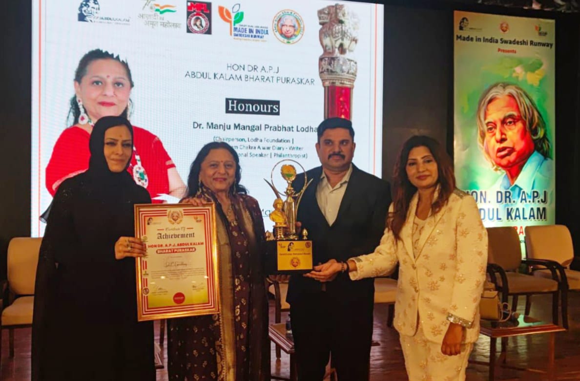 मुंबई। साहित्य, समाज सेवा और राष्ट्र प्रेम की अलख जगाने वाली लोढ़ा फाउंडेशन और इंटरनेशनल जैन साहित्य संगम की अध्यक्ष, महाराष्ट्र हिंदी साहित्य अकादमी की उपाध्यक्ष, परम चक्र अवॉर्ड डायरी लेखिका , सुप्रसिद्ध साहित्यकार तथा प्रेरणादायक वक्ता के रूप में अपनी विशिष्ट पहचान बनाने वाली डॉ मंजू मंगलप्रभात लोढ़ा को मुंबई सीजन– 8 में डॉक्टर एपीजे अब्दुल कलाम भारत पुरस्कार से सम्मानित किया गया। 30 मई को वी बी चव्हाण ऑडिटोरियम में आयोजित एक भव्य कार्यक्रम में उन्हें यह पुरस्कार प्रदान किया गया। इस अवसर पर भारत रत्न डॉक्टर एपीजे अब्दुल कलाम के भतीजे एपीजेएमजे शेख सलीम, यूएई की पावर वूमेन आफ लिगेसी डॉ अरशी अयूब जवेरी, पुरस्कार की संस्थापक सोनिया मेयर समेत अनेक विशिष्ट लोग उपस्थित रहे। इस अवसर पर बोलते हुए डॉ मंजू लोढ़ा ने कहा कि पूर्व राष्ट्रपति और मिसाइल मैन कहे जाने वाले डॉ एपीजे अब्दुल कलाम भारत माता के ऐसे सपूत रहे जिन पर पूरे देशवासियों को गर्व है। उनकी सादगी, विनम्रता, ईमानदारी, कर्तव्य निष्ठा उनके परिवार में भी दिखती है। ऐसे महान व्यक्ति के नाम पर पुरस्कार प्राप्त करना अत्यंत गौरव की बात है। उन्होंने कहा कि यह पुरस्कार उनके सेवा पथ पर एक और प्रेरणादायक उपलब्धि है। शिक्षा, स्वास्थ्य, महिला सशक्तिकरण और संस्कृति के संरक्षण की दिशा में वे पूरे मनोयोग के साथ काम करती रहेंगी।