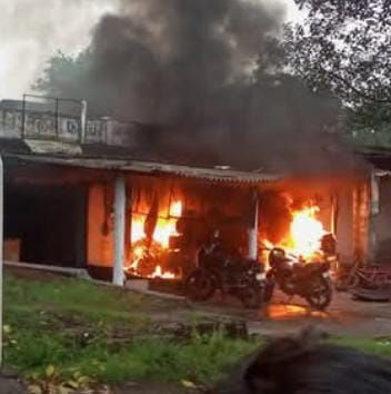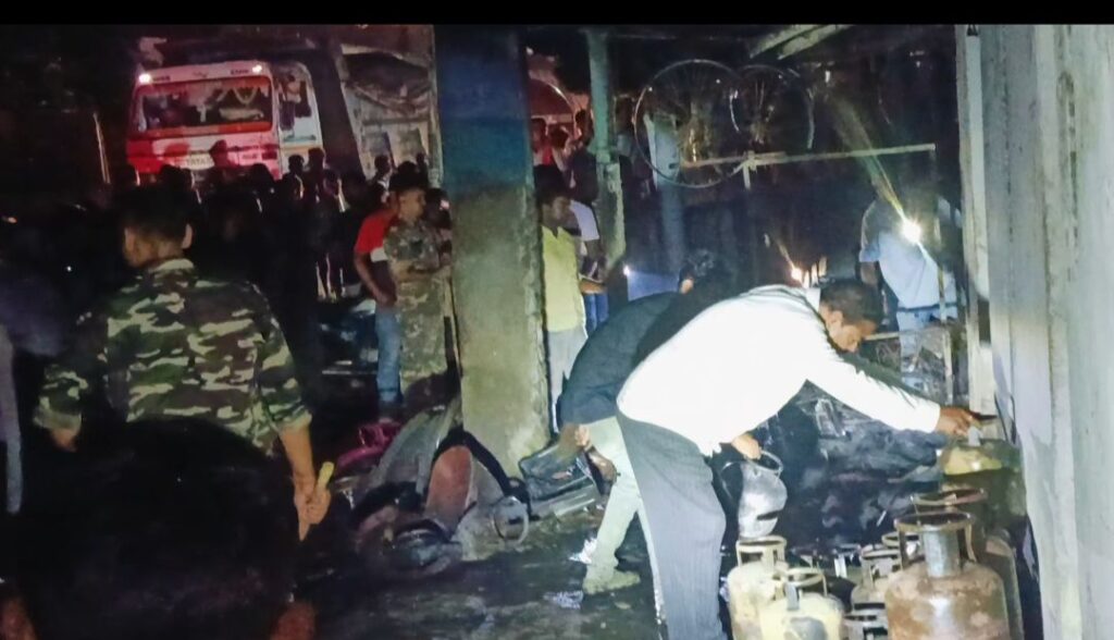 Akhand Rashtra News > ताज़ा ख़बरें > तेतुलमारी में गैस सिलेंडर ब्लास्ट से मची अफरा-तफरी, दुकान मालिक की मौत, एक घायल — जनता साइकिल व गैस दुकान जलकर राख