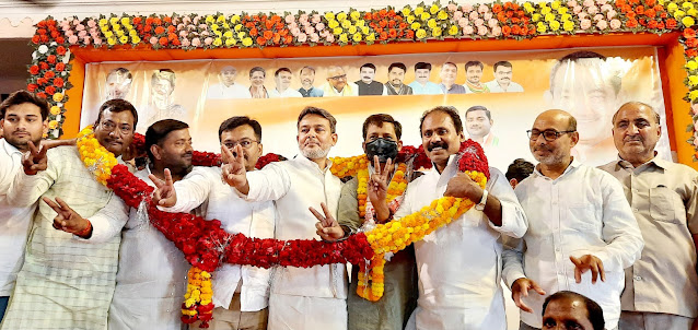 जौनपुर। कांग्रेस पार्टी के नवनियुक्त ज़िलाध्यक्ष डॉ प्रमोद सिंह एवं शहर अध्यक्ष आरिफ़ खान के स्वागत में भव्य कार्यक्रम का आयोजन नगर के हिंदी भवन में कार्यकर्ता सम्मेलन व पदग्रहण समारोह आयोजित किया गया। इस समारोह को लेकर कार्यकर्ताओं में खासा उत्साह देखने को मिला। जहां सर्वप्रथम डॉ प्रमोद सिंह एवं आरिफ़ खान का कार्यकर्ताओं ने माल्यार्पण कर ज़ोरदार स्वागत किया। इस दौरान संगठन मज़बूत करने और जन समस्याओं के समाधान के लिए संघर्ष करने का कार्यकर्ताओं ने निर्णय लिया।इस दौरान ज़िलाध्यक्ष डॉ प्रमोद सिंह ने कहा कि संगठन को सशक्त बनाने के लिए सभी का सहयोग बहुत ज़रूरी है। आपसी मतभेद को भुलाकर संगठन को कार्यकर्ता मज़बूत करें ताकि कांग्रेस जनपद में मज़बूत हो सके। उन्होंने कहा कि मुझे जो ज़िम्मेदारी मिली है मैं उसका निर्वाहन पूरी निष्ठा व ईमानदारी के साथ करूंगा कार्यकर्ताओं के मान-सम्मान में कोई कमी नहीं होगी है।शहर अध्यक्ष आरिफ़ खान ने प्रदेश एवं राष्ट्रीय नेतृत्व का आभार व्यक्त करते हुए कहा कि शहर के प्रत्येक वार्डो में कार्यक्रम आयोजित कर वार्ड अध्यक्षों का मनोनयन किया जाएगा। प्रत्येक कांग्रेस जन अपने मतभेद को दरकिनार कर कांग्रेस पार्टी की मज़बूती के लिए कार्य करें मेरा विश्वास है कि उत्तर प्रदेश में 2027 में हमारी सरकार होगी। इसके अतिरिक्त अन्य कांग्रेस नेताओं ने अपने विचार प्रकट किये।इस अवसर पर फैसल हसन तबरेज़,विशाल सिंह हुकुम,पंकज सोनकर,आर सी पाण्डेय,राकेश सिंह डब्बू,राकेश मिश्र,फैय्याज हाशमी,देवेंद्र सिंह,रेखा सिंह,अमित तिवारी बबलू,साजिद मानू,जब्बार अली सलमानी,नियाज़ ताहिर शेखू,अबुज़र शेख़,निसार इलाही,उस्मान अली एडवोकेट,सृजन सिंह,शशांक सोनकर,देवराज पांडेय,अनीस अहमद,शाहनवाज़ खान,समेत काफी संख्या में कांग्रेस जन उपस्थित रहे। सत्यवीर सिंह ने आज के कार्यक्रम का कुशल संचालन किया।