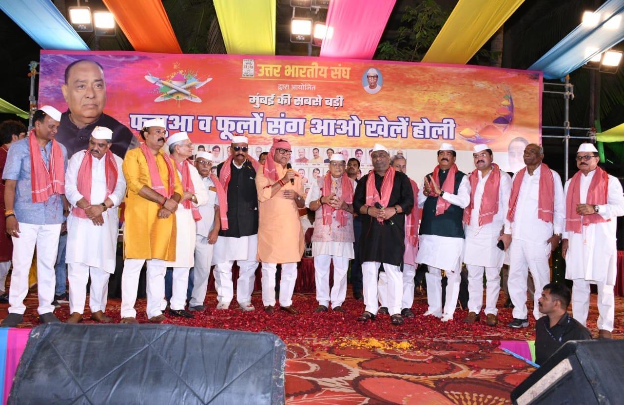 कार्यक्रम की शुरुआत उत्तर भारतीय संघ के संस्थापक स्वर्गीय बांकेलाल तिवारी और बाबू आरएन सिंह को श्रद्धा सुमन अर्पित करने से हुई। सभी आमंत्रित लोगों का सत्कार उत्तर प्रदेश के पारंपरिक गमछे और महाराष्ट्र की सफेद टोपी पहनाकर किया गया। लोक गायक सुरेश शुक्ला ने पारंपरिक होली गीत पेश कर अलग समा बना दिया। इसके बाद उत्तर भारतीय संघ के अध्यक्ष संतोष आरएन सिंह ने सभी आमंत्रित लोगों के साथ फूलों की होली खेलकर उन्हें शुभकामनाएं दी।