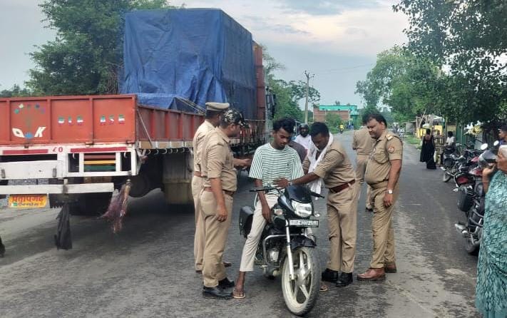 चेकिंग अभियान के दौरान बिना हेलमेट और ट्रिपल सवारी करने वालों का चालान काटा गया। पुलिस प्रशासन ने सड़क सुरक्षा को लेकर लोगों को जागरूक करने के साथ-साथ नियमों का उल्लंघन करने वालों पर कड़ी कार्रवाई की चेतावनी दी है।