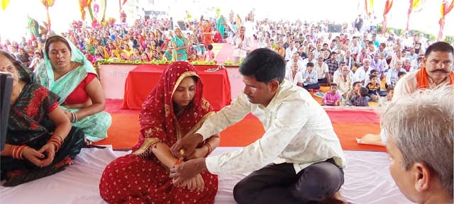 जौनपुर। अब सच होगा सपना, दहेज मुक्त भारत अपना। ऐसा ही कार्यक्रम नगर के मां शीतला पैलेस प्रसाद कालेज के सामने में विशाल सत्संग का आयोजन एलईडी के माध्यम से संत रामपाल जी महाराज के शिष्यों ने सम्पन्न कराया जहां एक जोड़ी का विवाह जिसे संत भाषा में रमैणी कहते हैं, सकुशल सम्पन्न हुआ जो वर्तमान समय के परिवेश में समाज के लिये आईना है। एक ऐसा अनोखा विवाह जिसमें न बैण्ड—बाजा, न बाराती, न डीजे, न नाचना—गाना, पूरे सादगी के साथ बिना ताम—झाम, आडम्बर, चमक-दमक व दहेज रहित शादी मात्र 17 मिनट में बह्मांड के सभी प्रकार के देवी देवता ऋषि—मुनियों के आह्वान के साथ गुरुवाणी के माध्यम से हुआ। ऐसा विवाह हुआ जिसमें किसी प्रकार का कोई लेन-देन नहीं हुआ। यह विवाह जौनपुर के प्रवेश दास पुत्र जगदम्बा प्रसाद निवासी सुरहुरपुर व जिला बरेली की प्रीति मिश्रा पुत्री जितेंद्र प्रसाद के साथ हुआ जो आज के समाज को नई दिशा प्रदान कर रहे हैं। आज के कार्यक्रम में 2 घंटे का सत्संग हुआ जिसके बाद विवाह सम्पन्न हुआ। इस अवसर पर जिला सेवादार रामजी दास, राजेश दास, सुरेश दास, यशवंत दास, लालमनि दास, राजेन्द्र दास, राम अधार दास, राजकुमार दास सहित तमाम लोग उपस्थित रहे।