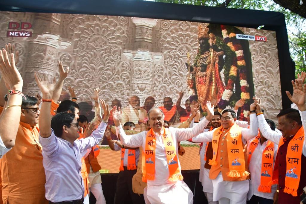 मुंबई। जब आप किसी के प्रेम या भक्ति में डूब जाते हैं, तो अपना सुध बुध खो बैठते हैं। अयोध्या में रामलला प्राण प्रतिष्ठा समारोह का जादू आज पूरे देश में लोगों के सिर पर चढ़कर बोला। प्रभु श्री राम के स्वागत में भारतीय जनता पार्टी के नरीमन प्वाइंट स्थित प्रदेश कार्यालय में आयोजित कार्यक्रम में कुछ ऐसा ही देखने को मिला। भगवान राम से जुड़े भक्ति गीतों को सुनकर महाराष्ट्र के पूर्व गृह राज्यमंत्री तथा वरिष्ठ भाजपा नेता कृपाशंकर सिंह भी खुद को नहीं रोक पाए। रामभक्ति की धुन पर वे भी थिरकने लगे। इस बारे में पूछे जाने पर उन्होंने कहा कि वे प्रभु राम की भक्ति भाव में इतना डूब गए थे कि उन्हें खुद पता नहीं चला कि कब उनके पैर थिरकने लगे। सब कुछ राममय हो गया था। मैं पूरी तरह से खुद को संतृप्त और आनंदित महसूस कर रहा था। ऐसा लगता था कि मैं मर्यादा पुरुषोत्तम भगवान राम के चरणों में शरणागत हो गया हूं। कार्यक्रम में भारी संख्या में भाजपा के प्रदेश पदाधिकारी और कार्यकर्ता उपस्थित रहे।