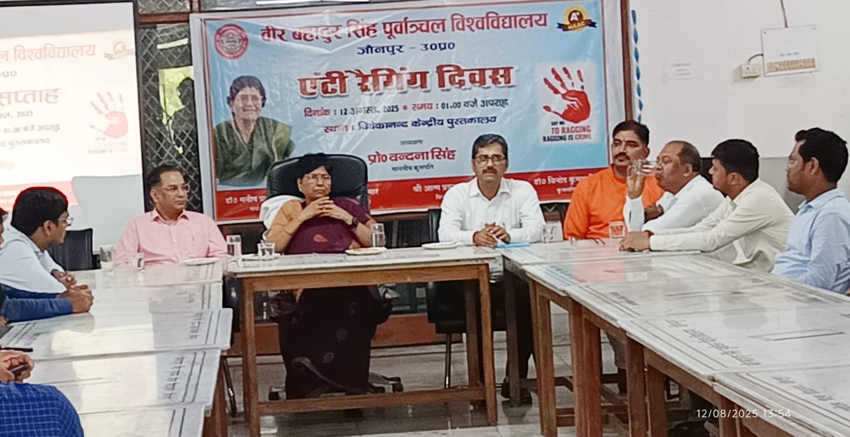 जौनपुर। वीर बहादुर सिंह पूर्वांचल विश्वविद्यालय के विवेकानंद केंद्रीय पुस्तकालय में मंगलवार को एंटी रैगिंग सप्ताह का शुभारंभ किया गया। इस अवसर पर विश्वविद्यालय की कुलपति प्रोफेसर वंदना सिंह की अध्यक्षता में उद्घाटन समारोह आयोजित हुआ।