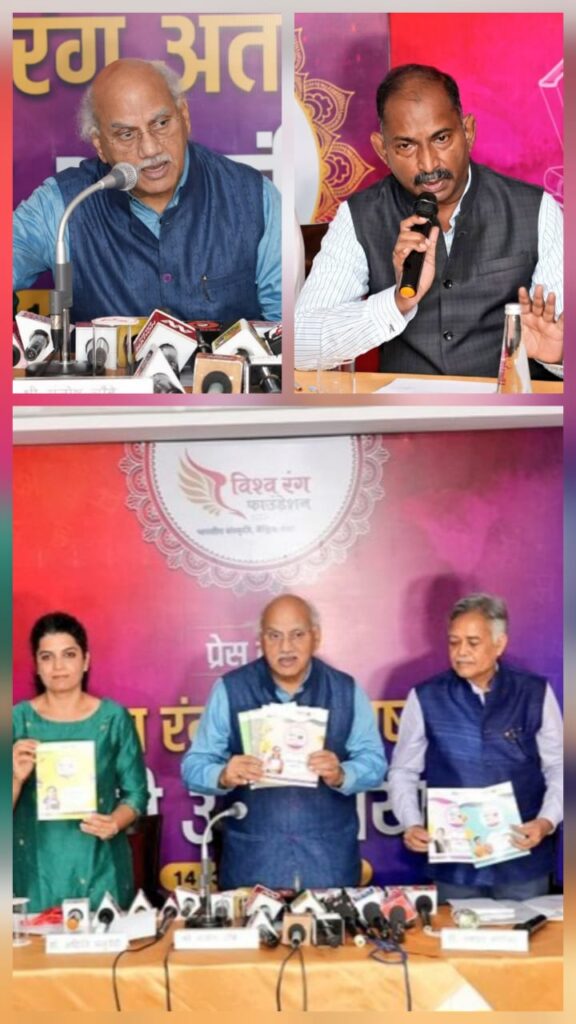 भोपाल। हिंदी भाषा के वैश्विक प्रचार – प्रसार और नई पीढ़ी को हिंदी से जोड़ने के उद्देश्य से विश्व रंग फाउंडेशन (भारत), रवीन्द्रनाथ टैगोर विश्वविद्यालय भोपाल एवं वनमाली सृजन पीठ द्वारा संयुक्त रूप से विश्व रंग अंतरराष्ट्रीय हिंदी ओलंपियाड 2025 का आयोजन किया जा रहा है। यह आयोजन 14 सितम्बर (हिंदी दिवस) से 30 सितम्बर (अंतरराष्ट्रीय अनुवाद दिवस) तक भारत सहित विश्व के 50 से अधिक देशों में आयोजित होगा। इसके संबंध में गुरुवार को पलाश रेसिडेंसी में प्रेस वार्ता का आयोजन किया गया। इस दौरान कार्यक्रम में विश्व रंग के निदेशक और रवीन्द्रनाथ टैगोर विश्वविद्यालय के कुलाधिपति संतोष चौबे, विश्व रंग की सह निदेशक और रवीन्द्रनाथ टैगोर विश्वविद्यालय की प्रो. चांसलर डॉ. अदिति चतुर्वेदी वत्स, वरिष्ठ शिक्षाविद् डॉ. अमिताभ सक्सेना, टैगोर अंतरराष्ट्रीय हिंदी केन्द्र के निदेशक डॉ. जवाहर कर्नावट और टैगोर अंतरराष्ट्रीय साहित्य एवं कला केंद्र के निदेशक श्री विनय उपाध्याय ने कार्यक्रम पर विस्तृत जानकारी साझा की। विश्वरंग हिंदी ओलंपियाड का औपचारिक उद्घाटन मध्य प्रदेश के माननीय मुख्यमंत्री श्री मोहन यादव द्वारा 15 सितंबर को वेबसाइट के उद्घाटन के साथ किया जाएगा।