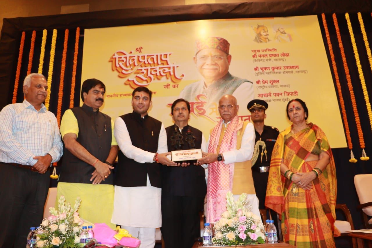 समारोह के दौरान भाजपा, मुंबई के उपाध्यक्ष आचार्य पवन त्रिपाठी ने अपने स्वागत भाषण में कहा कि आज हम एक ऐसे व्यक्तित्व का स्वागत कर रहे हैं जो ऊंचे से ऊंचे पद पर रहते हुए भी हमेशा बेदाग रहे हैं। वे बेदाग इसलिए रह पाए हैं क्योंकि वे सनातन पर विश्वास करते हैं। सदाचार से क्या नहीं प्राप्त किया जा सकता है , इसका सर्वोत्तम उदाहरण हैं हिमाचल के राज्यपाल शिवप्रताप शुक्ल जी। भाजपा के राष्ट्रीय प्रवक्ता प्रेम शुक्ल ने कहा कि जहां ज्वाला देवी हैं, जहां बगलामुखी देवी हैं यानी जो हिमाचल प्रदेश देव भूमि है वहां के राज्यपाल शिवप्रताप शुक्ल जी हमारे बीच हैं। मुंबई में रहने वाले हिंदी भाषियों के लिए गर्व की बात है कि स्वच्छ, अनुशासित और संयमी राज्यपाल शिवप्रताप शुक्ल का हिंदी दिवस पर स्वागत करने का अवसर प्राप्त हुआ है। प्रेम शुक्ल ने शिवप्रताप शुक्ल जी को किसी भी परिस्थिति में समझौता न करनेवाला और अपने विचारों पर अडिग रहने वाला व्यक्ति बताया.।पुलिस महानिदेशक (होमगार्ड) भूषण कुमार उपाध्याय ने कहा कि आध्यात्मिक व्यक्ति की समाज को देखने की दृष्टि बदल जाती है। भारत में नाम और गुण बहुत मायने रखते हैं। समर्पित व्यक्ति ही सामाजिक जीवन की यात्रा को नवीन ऊंचाई दे पाता है। शिवप्रताप शुक्ल जी का जीवन इन सभी गुणों का समन्वय है।कैबिनेट मंत्री मंगल प्रभात लोढ़ा ने अपने संबोधन में कहा कि अयोध्या में राममंदिर निर्माण अंतिम चरण में है। जिस प्रकार मूर्ति के सामने बैठने पर आध्यात्मिक अनुभूति होती है, वही भाव शिवप्रताप शुक्ल जी के सम्मुख होता है। आचार्य पवन त्रिपाठी ने मुंबई के हिंदी भाषियों को फेविकोल की भांति जोड़ रखा है। हमें आगे चलकर बड़े स्तर पर कार्य करना है। ताकि देश एवं समाज को आगे ले जाने की दिशा में बेहतर कार्य किए जा सकें।