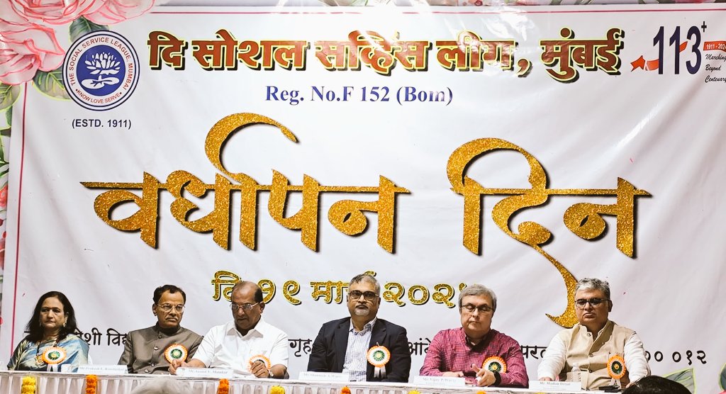 मुंबई। सोशल सर्विस लीग की 113वीं शताब्दी धूमधाम से मनाई गई। समारोह की शुरुआत एनकेजीएसबी बैंक के उपाध्यक्ष शांतेश वर्टी जो सम्मानित अतिथि थे उनके द्वारा दीप प्रज्ज्वलन के साथ हुई। इस कार्यक्रम में सूचना का अधिकार कार्यकर्ता अनिल गलगलीऔर मास्टरशेफ स्वानिल वाडेकर भी मौजूद थे। वर्षगांठ के अवसर पर संगठन के विभिन्न विभागों में 25 वर्ष की सेवा पूरी करने वाले कर्मचारियों को सम्मानित किया गया। पुरस्कृत शिक्षकों और विशेष स्टाफ पुरस्कार भी दिए गए। इस प्रशिक्षण वर्ग की प्रमुख प्राजक्ता सावंत को भी भारत में 1925 में शुरू किए गए पहले नाम जोशी सामाजिक कार्य वर्ग की 100वीं वर्षगांठ मनाने के लिए सम्मानित किया गया। प्रशिक्षणार्थियों को प्रमाण पत्र भी वितरित किये गये।शांतेश वर्ती ने अपने भाषण में कहा कि इस संस्थान में अतिथि के रूप में सम्मानित होना सौभाग्य की बात है क्योंकि इतिहास में अध्ययन करने वाले प्रतिष्ठित व्यक्तियों ने इस संस्थान में काम किया है। उन्होंने संस्था के पुनर्निर्माण कार्य में सहयोग देने का भी वादा किया। संस्था के अध्यक्ष आनंद माईनकर ने संस्था की सफलता में योगदान देने वाले सभी लोगों के प्रति आभार जताया। इस अवसर पर संस्था के विजय वर्टी, प्रकाश कोंडूरकर, उमा शेट्टी, मदन देसाई, हेमंत सामंत उपस्थित थे। संस्थान की नई गतिविधियों की जानकारी सीबीएसई की प्राचार्या अपेक्षा चौधरी ने दी। अंत में संस्थान के सेमी इंग्लिश एवं सीबीएसई स्कूलों के विद्यार्थियों एवं शिक्षकों ने सांस्कृतिक कार्यक्रम प्रस्तुत कर कार्यक्रम को और अधिक रोचक बना दिया। समारोह का समापन प्राचार्य दिलीप पांचांगने के धन्यवाद ज्ञापन और राष्ट्रगान के गायन के साथ हुआ।