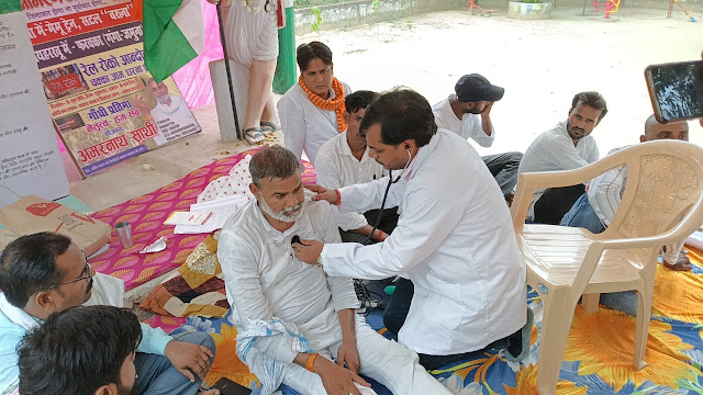 सीएचसी अधीक्षक डॉ. जी.के. सिंह के निर्देश पर पहुँचे चिकित्सक डॉ. मनीष मिश्र ने बताया कि अमरनाथ साथी भीषण गर्मी में केवल जल सेवन कर रहे हैं, जिससे उनके स्वास्थ्य पर प्रतिकूल असर पड़ रहा है। हालांकि अभी रक्तचाप सामान्य है, लेकिन स्थिति चिंताजनक हो सकती है। उन्होंने जरूरी दवाएं और ओआरएस का वितरण भी किया।