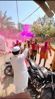होलियारों की टोली पर मुस्लिमों ने बरसाया फूल, दी होली की बधाईयां