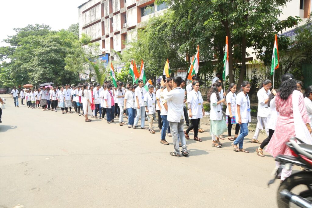 नालासोपारा। श्री नरसिंह के दुबे चॅरिटेबल ट्रस्ट द्वारा संचालित नालासोपारा आयुर्वेद मेडिकल कॉलेज ने आज 29 सितंबर 2023 को “मेरी माटी मेरा देश” कार्यक्रम के तहत “अमृत कलश” यात्रा का आयोजन किया। नेहरू युवा केंद्र संगठन के महाराष्ट्र व गोवा राज्य निदेशक,युवा एवं खेल मंत्रालय भारत सरकार के प्रतिनिधि प्रकाश कुमार मनोरे, नेहरू युवा केंद्र,अलीबाग के जिला युवा समन्वयक निशांत रौतेला, पालघर लोकसभा क्षेत्र रथ यात्रा के प्रमुख निरंजन पाल, नालासोपारा आयुर्वेद मेडिकल कॉलेज एवं अस्पताल के ट्रस्टी अमित दुबे, कॉलेज की प्राचार्या डॉ. हेमलता शेंडे, राष्ट्रीय सेवा योजना कार्यक्रम अधिकारी डॉक्टर सरिता पासी, कॉलेज के सभी अध्यापक,छात्र और अध्यापकेतर कर्मचारियों ने “अमृत कलश” में मिट्टी और अनाज का संकलन किया और फिर पंचप्राण प्रतिज्ञा ली। इसके पश्चात “अमृत कलश” समेत गणमान्य अतिथियों एवं विद्यार्थियों के साथ कॉलेज से फायर ब्रिगेड नालासोपारा तक “मेरी माटी मेरा देश” अभियान रैली निकाली गई और कॉलेज प्रांगण में समारोप किया गया।