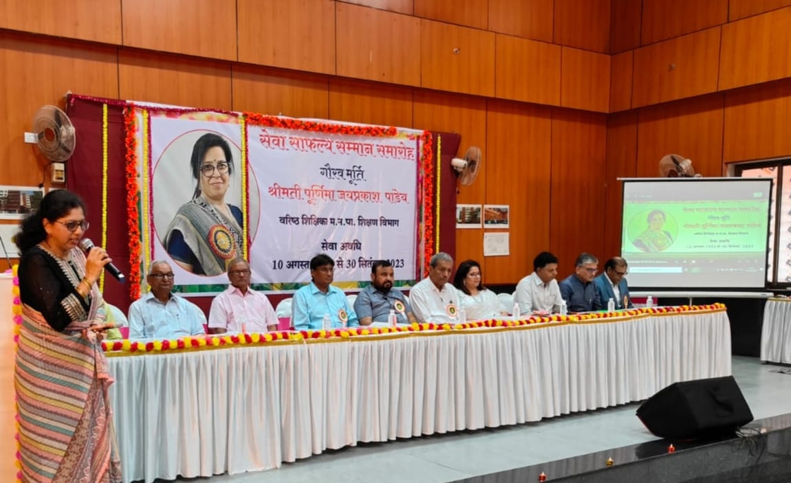 ,आरिफा शेख , इकबाल शेख, जगदीश गायकवाड तथा पूर्व एवम वर्तमान मुख्याध्यापकों , शिक्षकों ,परिजनों व मित्रजनों की उपस्थिति में संपन्न हुआ। ज्ञात हो कि पूर्णिमा जयप्रकाश पांडेय लगभग 31 वर्ष के सेवा काल में मुंबई महापौर आदर्श शिक्षक पुरस्कार, महाराष्ट्र राज्य शिक्षक गौरव पुरस्कार जैसे अनेक शासकीय एवं सामाजिक पुरस्कार प्राप्त कर चुकी हैं । वह एक कर्मठ विद्वान शिक्षिका के रूप में जानी जाती हैं। वह लगभग आठ वर्षो से वर्चुअल ट्रेनिंग सेंटर व पाठयपुस्तक निर्मित मंडल बालभारती से जुड़ी हुई है।