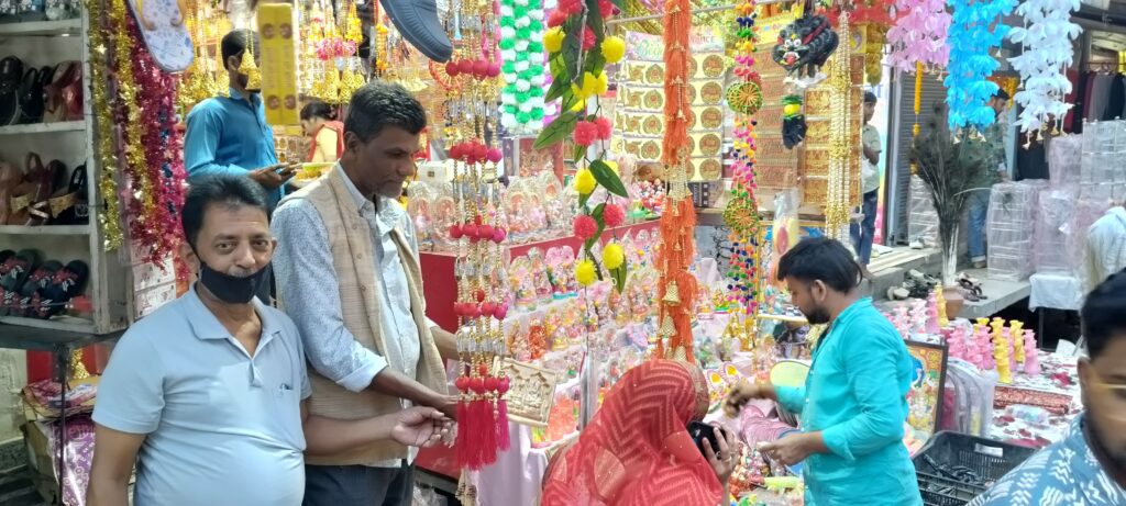मुंगराबादशाहपुर जौनपुर- धनतेरस के शुभ अवसर पर मुंगरा बादशाहपुर नगर में दिनभर खरीददारी का सिलसिला चलता रहा। बाजारों में सुबह से ही रौनक देखने को मिली। लोग शुभ मुहूर्त में बर्तन, इलेक्ट्रॉनिक सामान, गणेश-लक्ष्मी की प्रतिमाएं, वाहन, आभूषण सहित अन्य वस्तुओं की जमकर खरीददारी करते नजर आए।