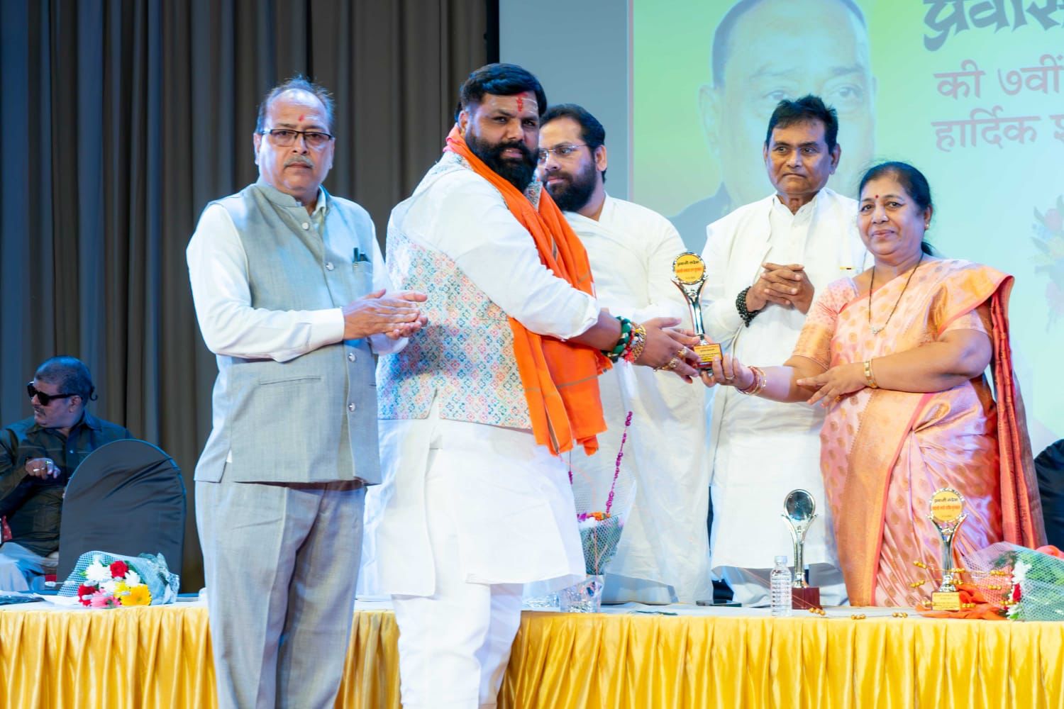 भायंदर। मीरा भायंदर के सुप्रसिद्ध समाजसेवी तथा राष्ट्रीय परशुराम सेना के संरक्षक अरविंद उपाध्याय को उनके सराहनीय सामाजिक और धार्मिक कार्यों को देखते हुए देखते हुए प्रवासी संदेश द्वारा लता मंगेशकर सभागृह में आयोजित कार्यक्रम में उन्हें प्रवासी संदेश समाज रत्न पुरस्कार से सम्मानित किया गया। उन्हें यह पुरस्कार बीजेपी की विधायक मनीषा ताई चौधरी के हाथों प्राप्त हुआ। पिछले दिनों भायंदर के एक अनाथ आश्रम में बुजुर्गों की सेवा करके अपनी माता की पुण्यतिथि मनाने के चलते सुर्खियों में आए अरविंद उपाध्याय मीरा भायंदर के साथ-साथ मुंबई, ठाणे तथा अपने गृह जनपद मडियाहू, जौनपुर में भी सामाजिक कार्य करते रहे हैं।